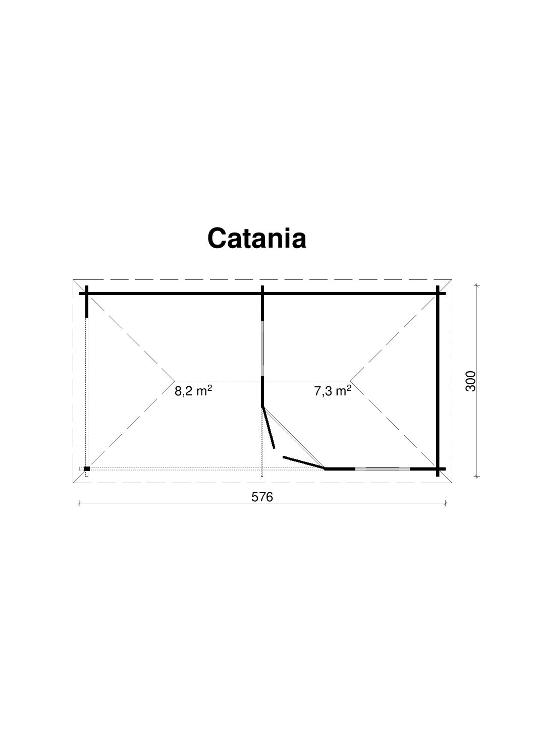 Bez wystających elementów konstrukcyjnych długość i szerokość domku wynosi 556×280 cm. Powierzchnia użytkowa wnętrza wynosi 7,3 m2, a tarasu 8,2 m2. Ściany zostały zbudowane z 40 mm bala świerkowego, jednak do konstrukcji dachu i podłogi użyto 18 mm desek. Użyte materiały i wysoce dopasowane elementy tworzą stabilną i wytrzymałą konstrukcję.