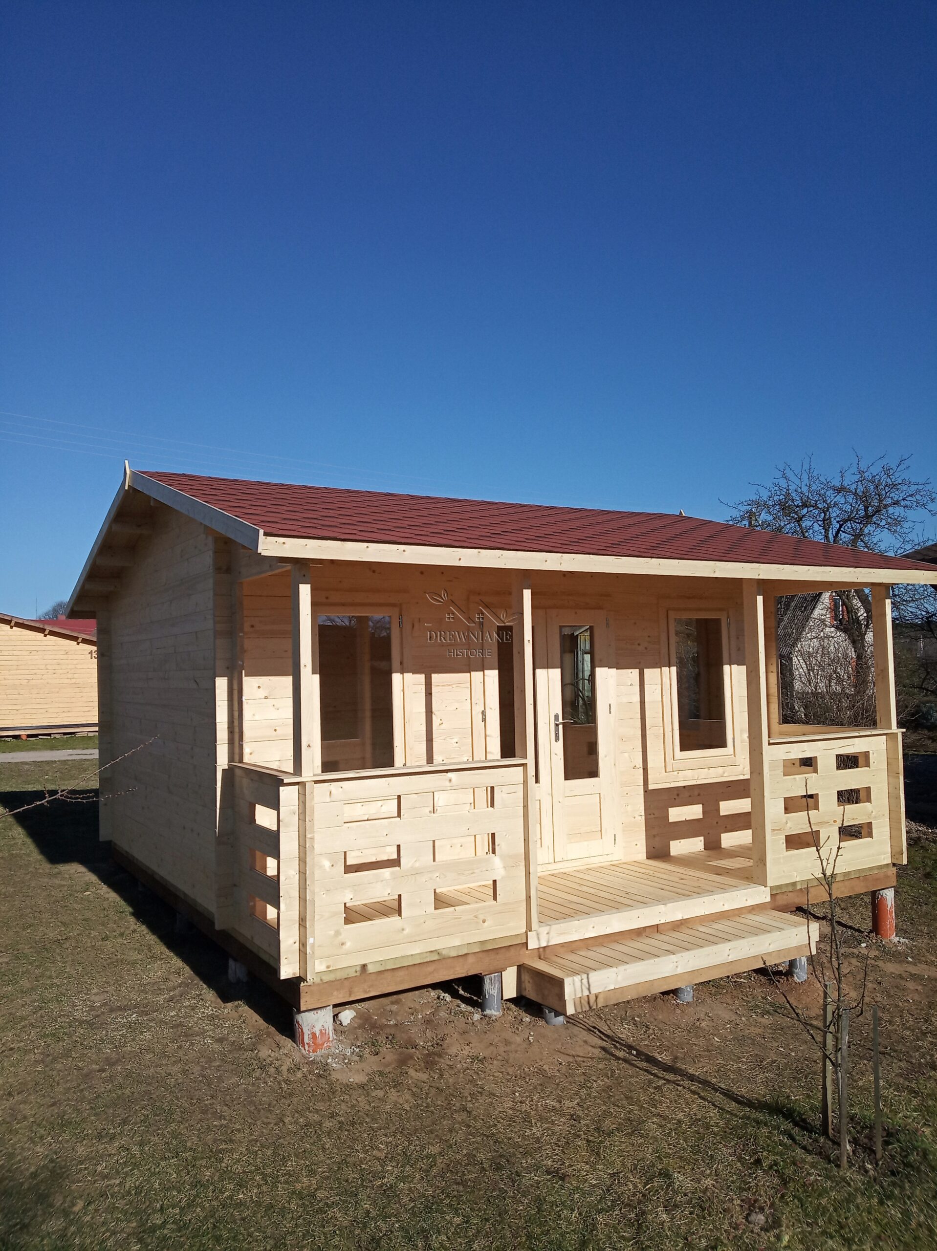 2. Domek z litego drewna, nie impregnowany. Impregnacja jest niezbędna zaraz po montażu. Możesz wykonać ją samodzielnie lub zlecić ją naszej firmie.
