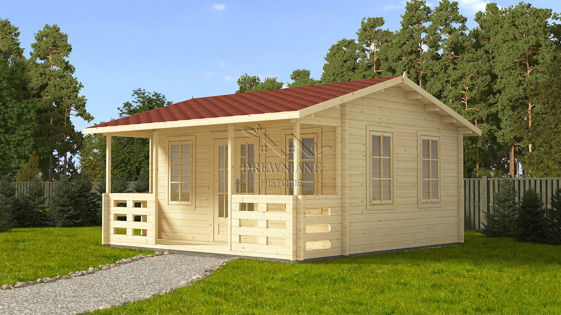• wymiary zewnętrzne 5mx5,1m: 5m x 4m + weranda 5m x 1m,