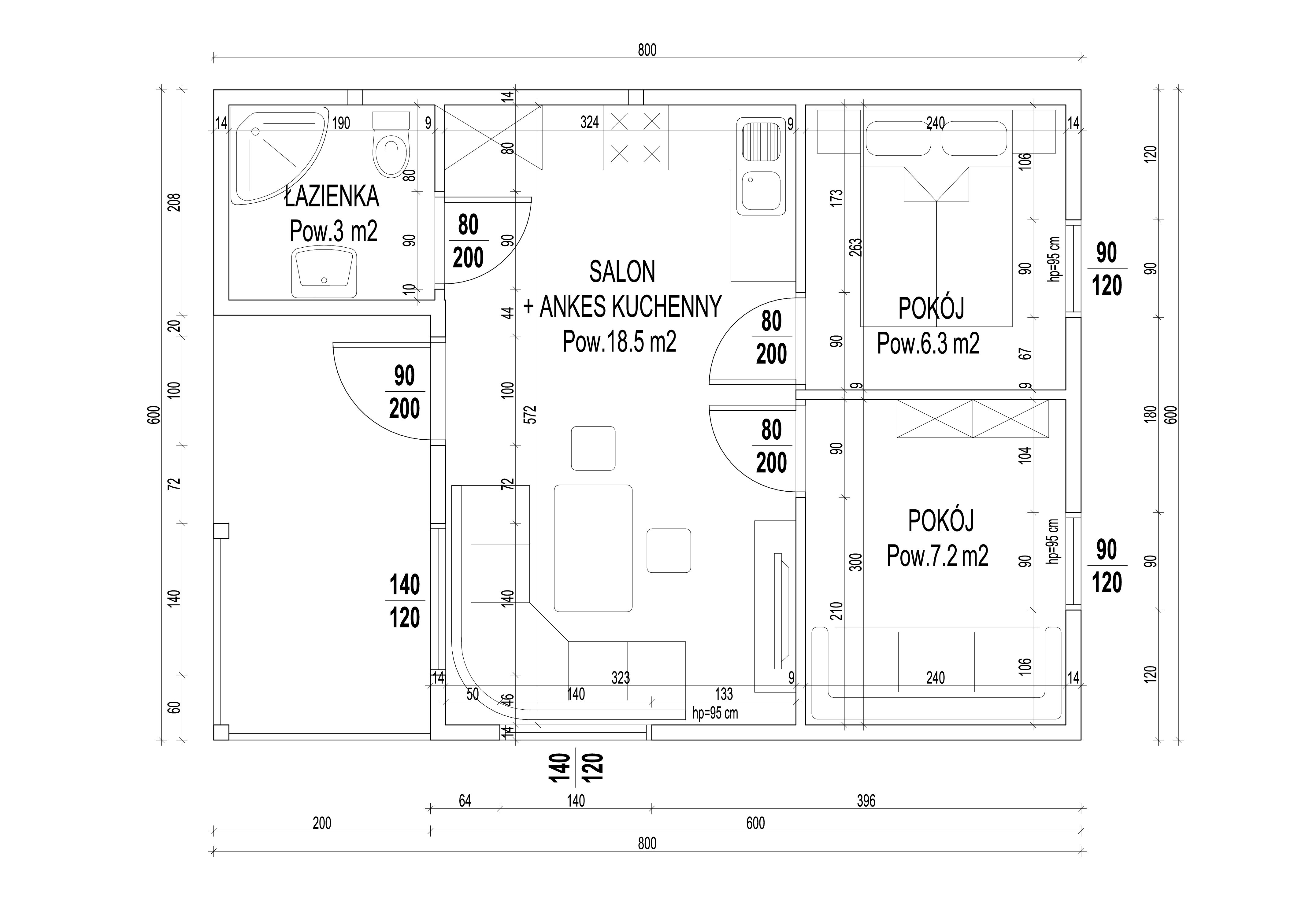 | Ilość drzwi: | 1x 900×2020 mm, 3x800x2020 mm |
