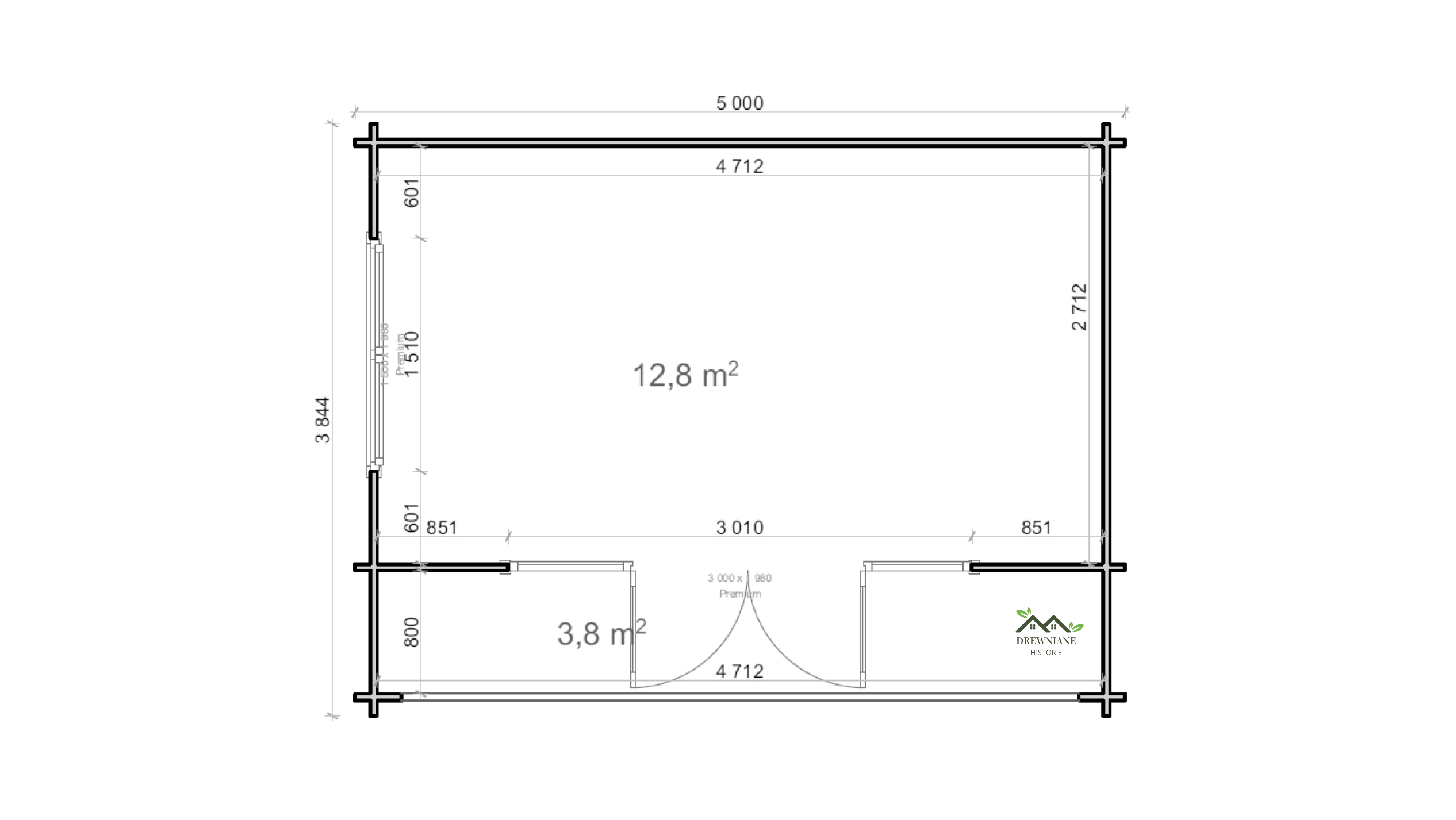 Wymiar bez el. wystających: 4,8 x 3,64m