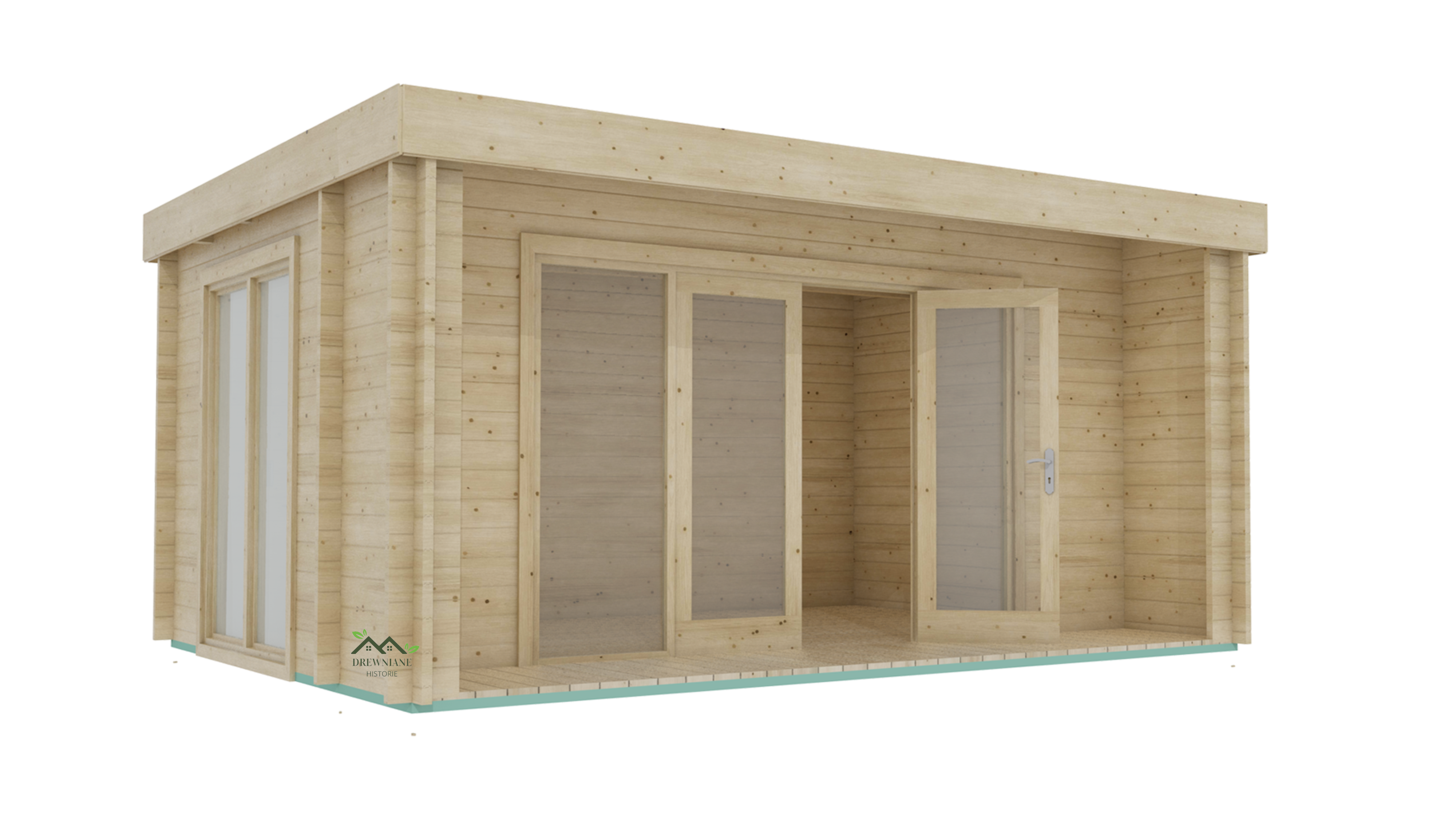 Konstrukcja wykonana została z wysokiej jakości świerku skandynawskiego o grubości ściany 44mm który przed obróbką jest czterostronnie strugany i suszony. Podłoga ma grubość 19 mm, a legar podwalinowy z tego samego surowca – 45 × 60 mm. Budynek zwieńczono jednospadowym dachem o kącie nachylenia 2°, w standardzie pokrytym 19-milimetrową deską świerkową.