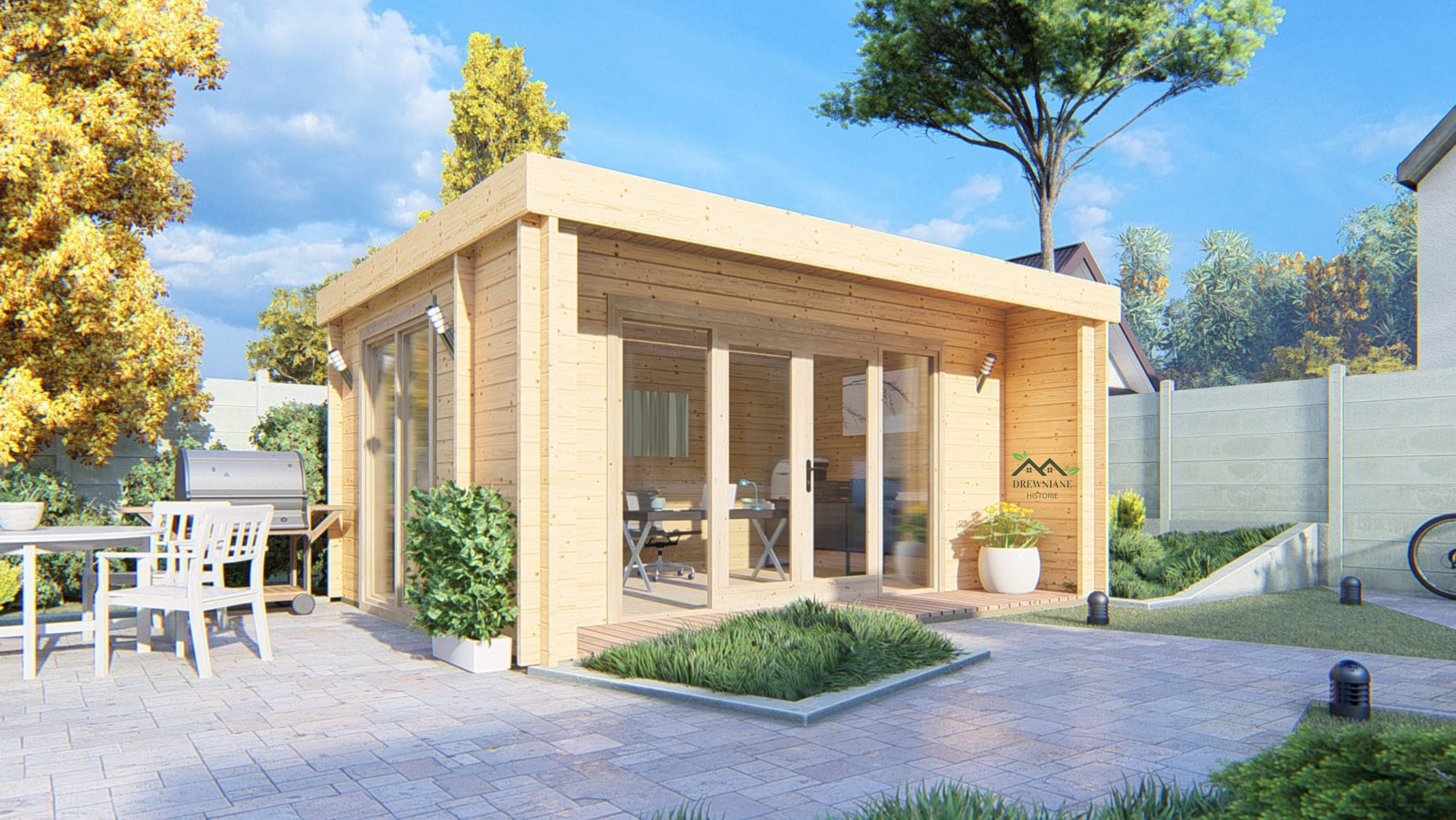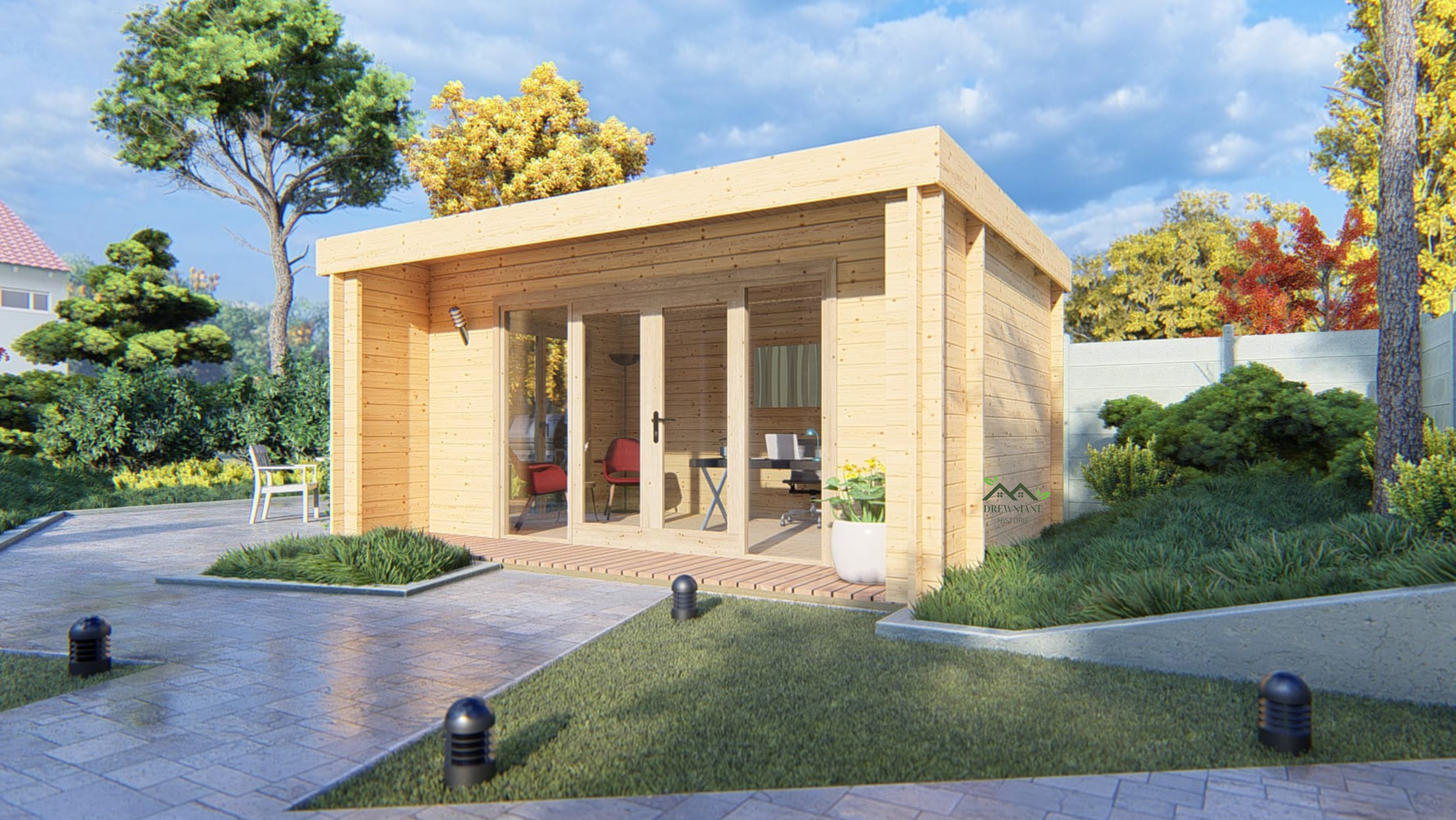 Dzięki dużym przeszklonym drzwiom i oknom dokoła domku wnętrze jest doskonale doświetlone naturalnym światłem. Domek można dodatkowo wyposażyć w różne opcje montażowe, realizowane przez nasze doświadczone ekipy, co gwarantuje najwyższą jakość wykonania i pełne zadowolenie.