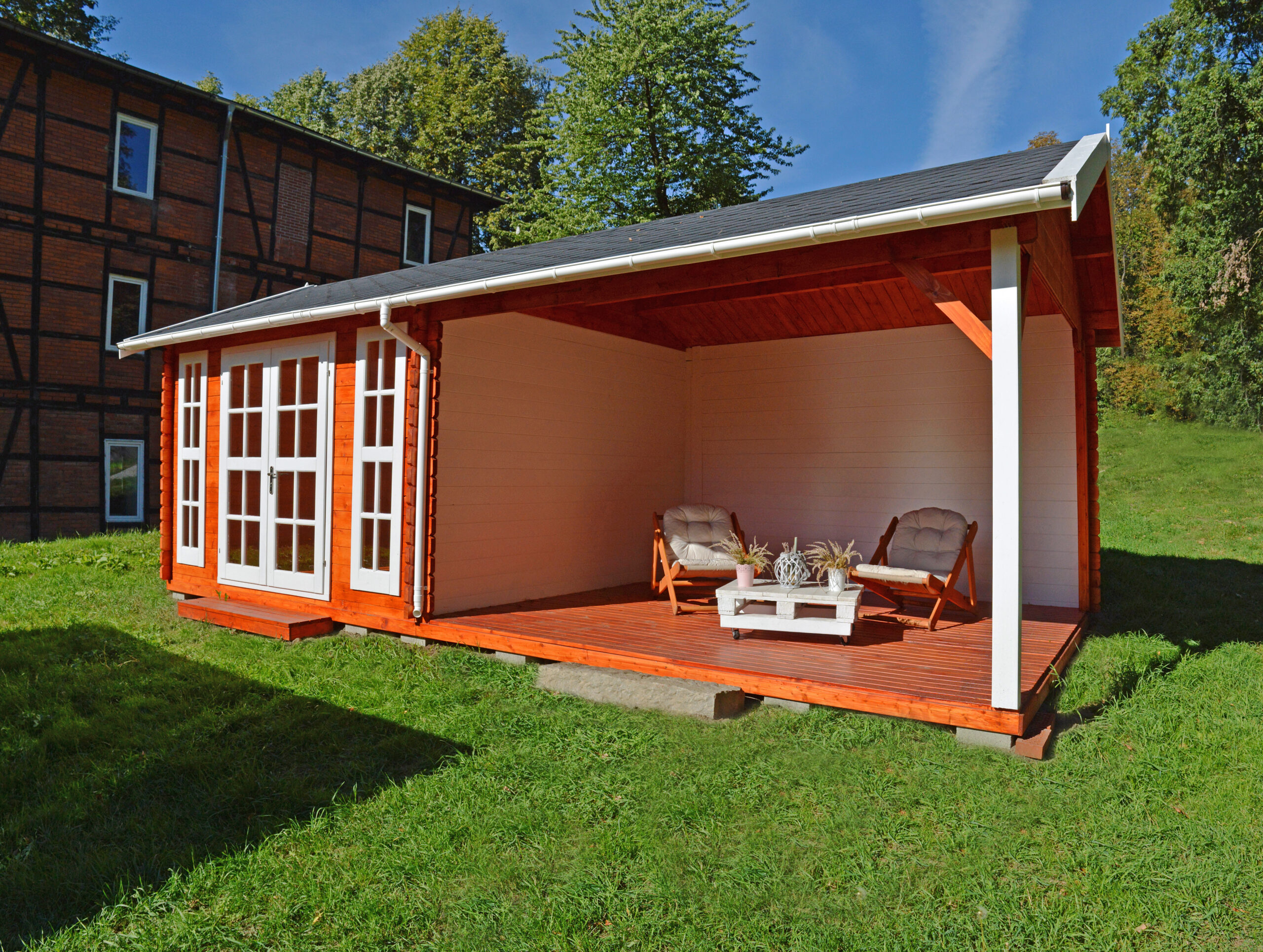 Drewniany domek letniskowy Igor II idealnie nadaje się jako miejsce dla gości w przydomowym ogrodzie lub jako domek rekreacyjny na działce. Ze względu na niewielką powierzchnię zabudowy, jego budowa nie wymaga pozwolenia budowlanego. Przestrzeń pod tarasem sprawia, że jest to rozwiązanie uniwersalne, które umożliwia zarówno spędzanie czasu wewnątrz, jak i na świeżym powietrzu.